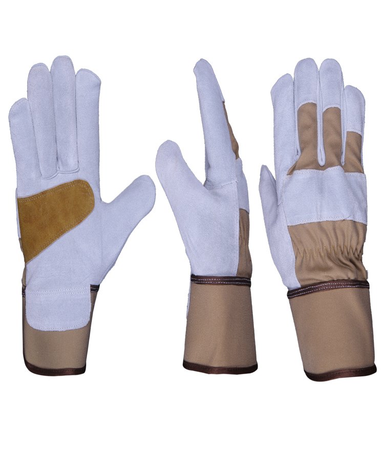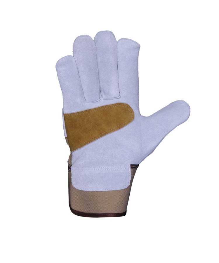 The glove is made of Cowhide Split leather & reinforcement palm with enhanced tensile and abrasion performance contrast overall light weight of the gloves, back made of cotton jeans fabric with rubberized safety cuff is suitable for most handling operations including janitorial work and gardening.