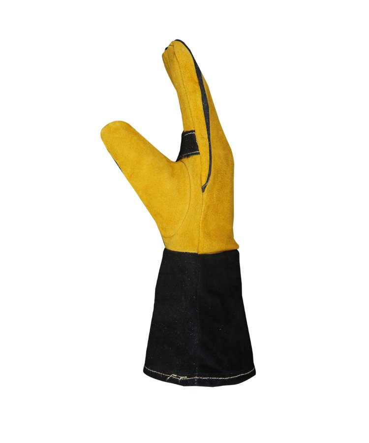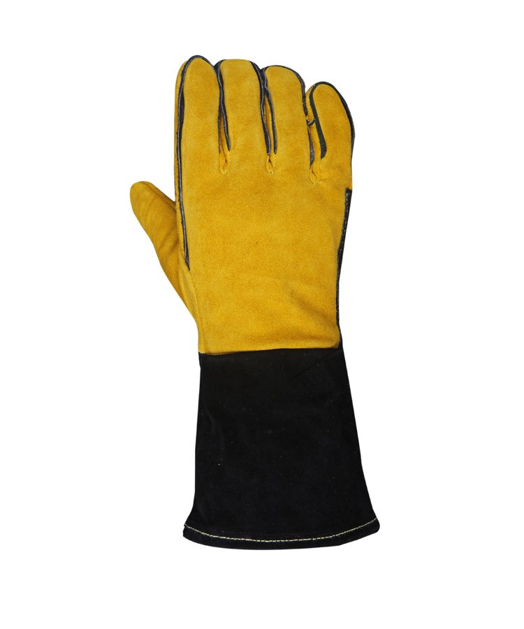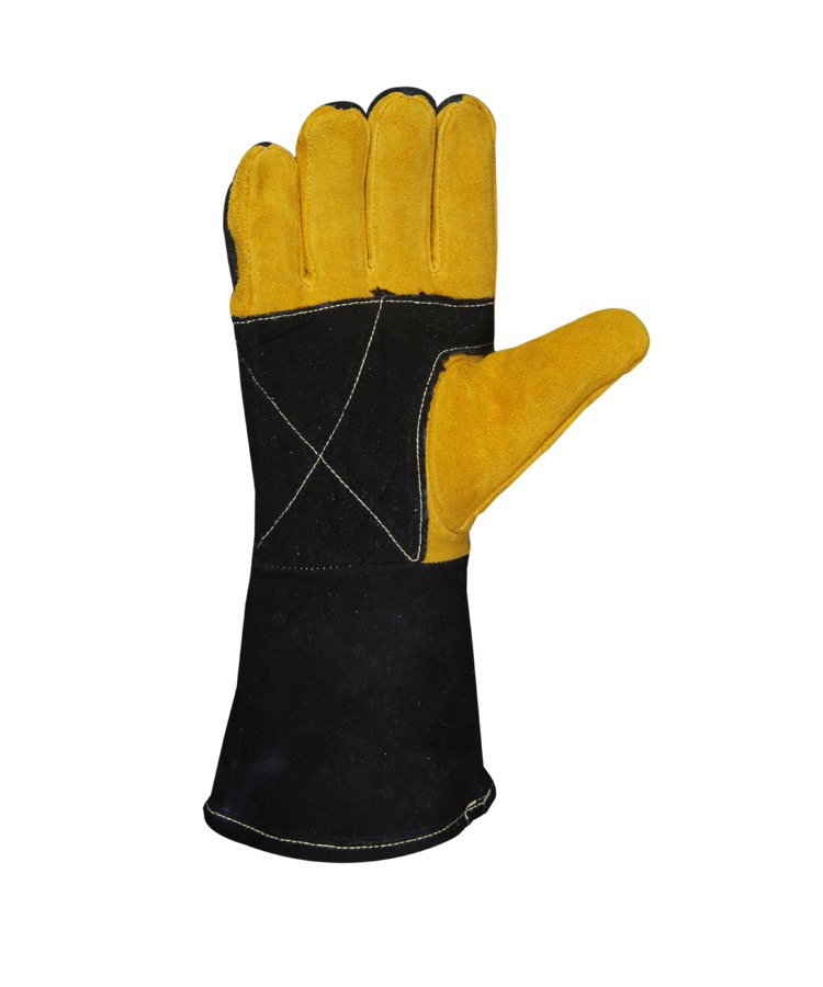 Welding Gloves & Heat-Resistant Gloves provide arm and hand protection against the sparks and heat that result from the welding process. This glove is made from premium selected leather 1.2mm thick and soft shoulder split natural cowhide leather with heat-resistant treatment (THT) with reinforcement patch palms and stitched with DuPont™ Kevlar® thread with an internal lining in 100% cotton fabric. Welted fingers protect stitching Cotton lined and split cowhide provides added comfort and heat protection.