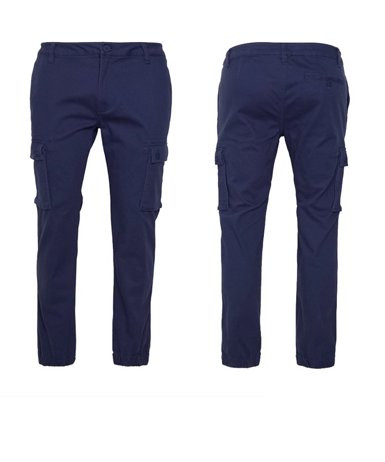 Made of 65% Cotton & 35% Polyester, 8 ½ oz. (245g/m2), adjustable belt, 2 front pockets, 2 side pockets with flap, 1 back pocket, 1 card holder, Reinforcements at knees and back crotch.