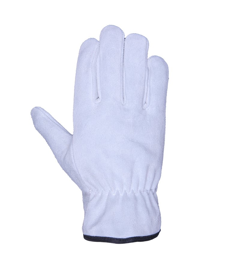 The glove is made of soft Cowhide Split leather with enhanced tensile and abrasion performance contrast overall light weight of the gloves, elasticated back and polyester edged is suitable for most handling operations including janitorial work and gardening.