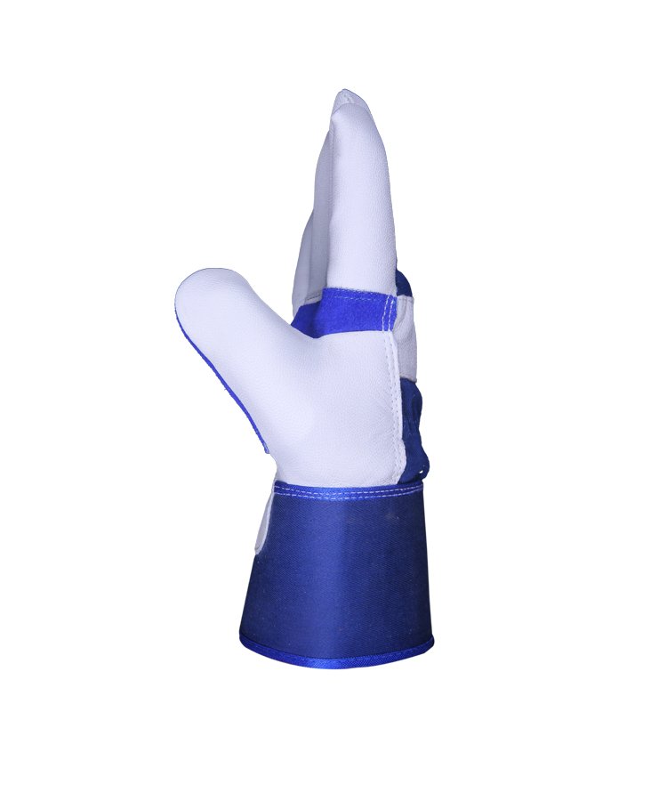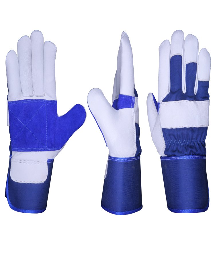 The glove is made of soft Goat skin leather & reinforcement cowhide split leather palm with enhanced tensile and abrasion performance contrast overall light weight of the gloves, back made of cotton Jeans fabric with rubberized safety cuff is suitable for most handling operations including janitorial work and gardening.