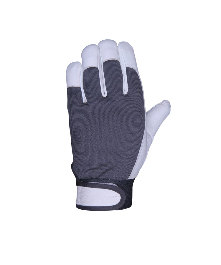 The glove is made of soft Sheep leather with enhanced tensile and abrasion performance contrast overall light weight of the gloves, back made of PC interlock fabric gives comfortable feeling to user. Elastic tape at cuff for easy to wear and Velcro closure gives user a liberal feeling to tighten/loosen the wrist closure as per work situation. Reinforcement at nails tips to protect against pinching. Polyester piping at Velcro closure strap is durable part of this glove.