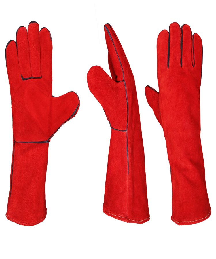 Welding Gloves & Heat-Resistant Gloves provide arm and hand protection against the sparks and heat that result from the welding process. This glove is made from premium selected leather 1.2mm thick and soft shoulder split natural cowhide leather with heat-resistant treatment (THT) and stitched with DuPont™ Kevlar® thread with an internal lining in 100% cotton fabric. Welted fingers protect stitching Cotton lined and split cowhide provides added comfort and heat protection.