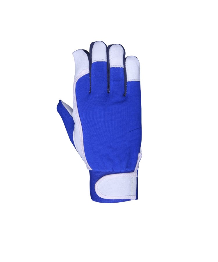 The glove is made of soft Goat leather with enhanced tensile and abrasion performance contrast overall light weight of the gloves, back made four-way stretched ribbed fabric gives comfortable feeling to user. Elastic tape at cuff for easy to wear and Velcro closure gives user a liberal feeling to tighten/loosen the wrist closure as per work situation. Reinforcement at nails tips to protect against pinching. Polyester piping at Velcro closure strap is durable part of this glove.
