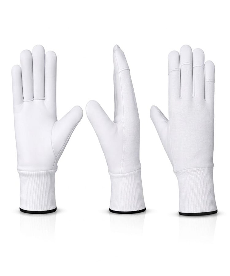 High-quality assembly work gloves manufactured using premium soft sheepskin leather on the palm and finger fronts to deliver excellent tactile sensitivity, flexibility, and a smooth natural grip, combined with a breathable PC interlock fabric back for enhanced airflow, comfort, and lightweight performance.