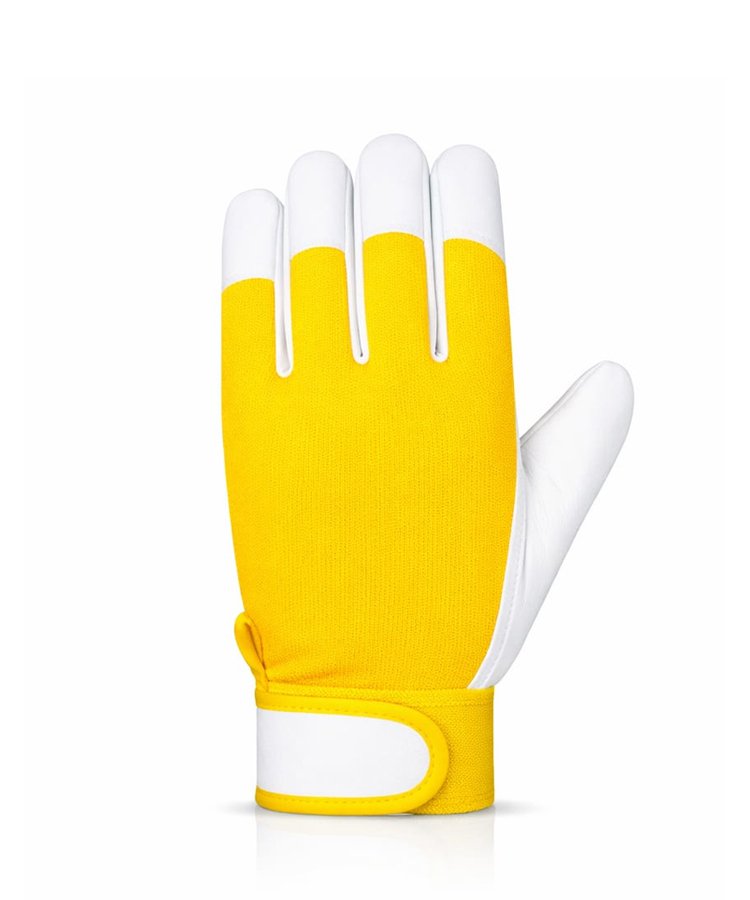 Premium assembly work gloves engineered using high-quality soft sheepskin leather on the palm and full finger fronts to deliver excellent tactile sensitivity, flexibility, and a smooth natural grip, combined with a breathable cotton interlock fabric back for enhanced airflow, comfort, and lightweight performance.